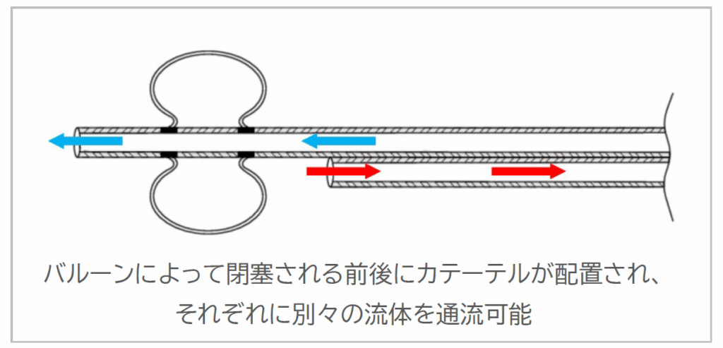 (図2)二重バルーンカテーテルを使用する臓器灌流の概念図